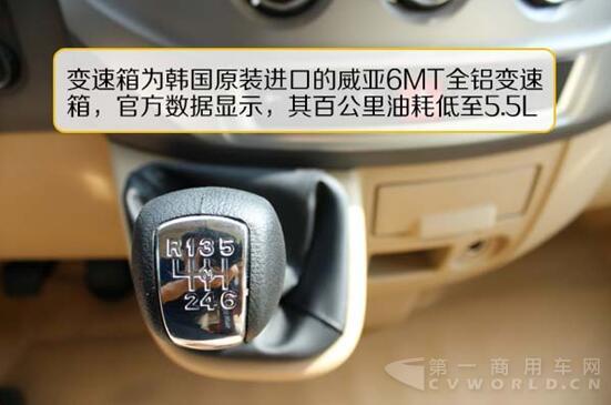 與發(fā)動(dòng)機(jī)匹配的變速箱,為韓國(guó)原裝進(jìn)口的威亞6MT全鋁變速箱,整車動(dòng)力性和經(jīng)濟(jì)性表現(xiàn)較為優(yōu)異。官方數(shù)據(jù)顯示,其百公里油耗低至5.5L,與同類競(jìng)品相比較有優(yōu)勢(shì)。在試駕過(guò)程中,該車傳動(dòng)系統(tǒng)表現(xiàn)良好,入擋較為順暢,車輛提速較快,整車的平穩(wěn)性和舒適度接近轎車。