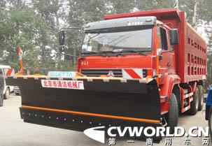 中國重汽商用車北京分公司與經(jīng)銷單位北京清潔機(jī)械廠攜國Ⅳ排放金王子除雪車參加了此次展會,在展覽會期間受到了廣大用戶的一致好評,并在會議期間就達(dá)成11臺除雪車的訂單。