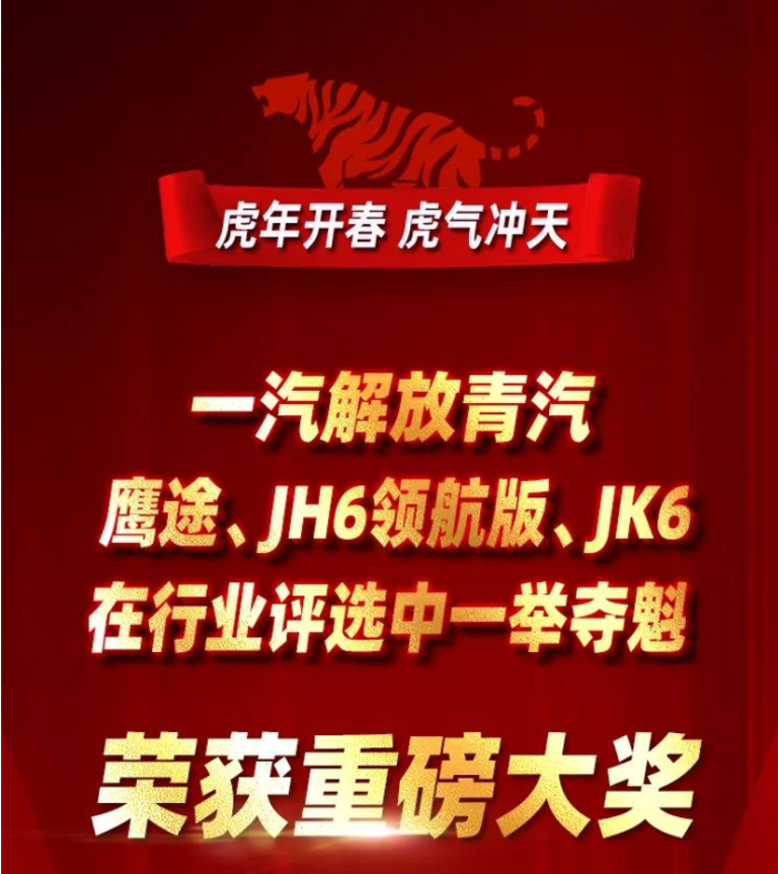 喜報頻傳虎氣沖天,一汽解放青汽三款產(chǎn)品榮獲行業(yè)大獎!
