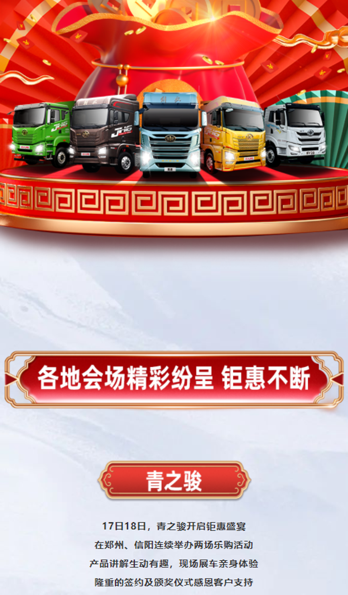 賀新春,抽好禮!解放青汽第四季卡車俠新春樂購會(huì)持續(xù)火爆!